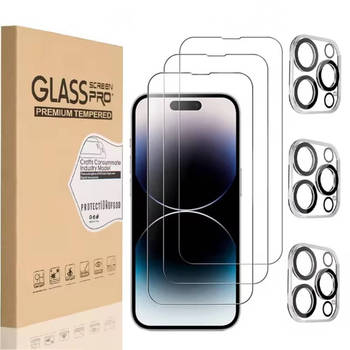 6-in-1 Protective Case iPhone 15 16 14 Pro Max 17 Air 3PCS Clear Tempered Glass Screen Protector +3PCS Camera Lens Protective